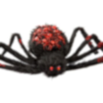 Maak je Halloween extra griezelig met deze grote enge spin! De zwarte romp is bedekt met kleine rode spinnetjes en de lange, buigzame poten maken het gemakkelijk om hem op de vloer, meubels of aan het plafond te plaatsen. Een opvallende decoratie!