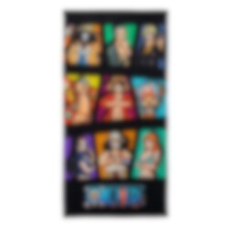 Kleurrijke badhanddoek met een chique ontwerp van de iconische karakters uit One Piece, perfect voor het strand of het zwembad. De handdoek is officieel gelicenseerd en gemaakt van 100% katoen.