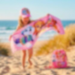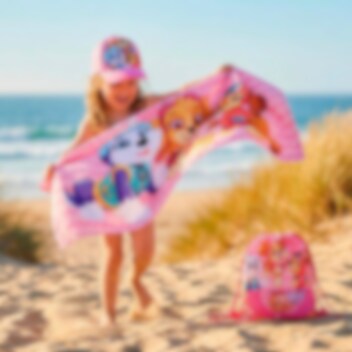Een kleurrijke en praktische set in Paw Patrol-thema, bestaande uit een handdoek, pet en gymtas - perfect voor strand, zwembad en alle zomerse avonturen. De speelse afbeeldingen met Skye en haar vrienden geven een vrolijk en energiek gevoel.