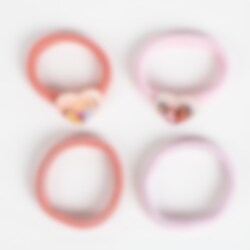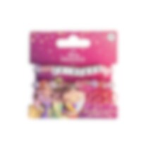Deze mooie set met 4 haarelatiekjes met Disney Prinsessen is zowel praktisch als sprookjesachtig. De set bevat vier elastiekjes in roze en abrikooskleurige tinten, waarvan twee zijn versierd met hartvormige details met populaire prinsessen zoals Rapunzel, Ariël, Belle en Tiana. Perfect voor kleine prinsesjes die een glinsterend accent aan hun kapsel willen geven.