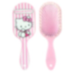 Maak van haarverzorging een stijlvol moment met deze schattige haarborstel met Hello Kitty. De borstel heeft een roze-wit gestreepte handgreep met Hello Kitty-afbeelding en een roze borstelkop met witte pinnetjes. Zacht voor het haar en perfect voor dagelijks gebruik. De haarborstel is ongeveer 22 cm lang.