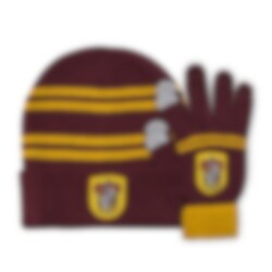 Zeer mooie muts met bijpassende wanten in hoge kwaliteit in Griffoendor kleuren van Harry Potter. De muts en handschoenen zijn gemaakt van 100% acryl en zijn in kindermaat. Geschikt voor kinderen tussen 8-10 jaar. Dit is een officieel gelicentieerd product van de fabrikant Cinereplicas.