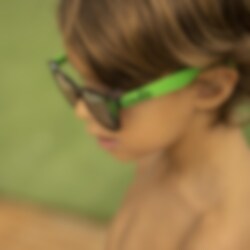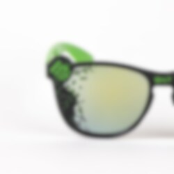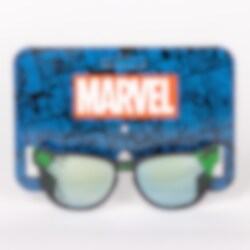 Premium zonnebril voor kinderen in groen en zwart met coole details van de Hulk. Op de monturen rond de getinte glazen is de superheld Hulk en zijn krachtige vuist te vinden.