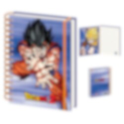 Het notitieboek in A5-formaat heeft een kaft met Goku in gevechtshouding en een Super Saiyan-ontwerp aan de binnenkant. Dankzij de spiraalbinding kun je het makkelijk openslaan, en de gelinieerde pagina’s zijn ideaal voor school of vrije tijd.