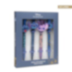 Schrijf in stijl – samen met Stitch! Deze kleurrijke set van 4 balpennen heeft gedetailleerde 3D-toppertjes met Stitch' ondeugende gezicht, inclusief varianten met zonnebril. Elke pen heeft een ander patroon en kleurtint en wordt geleverd in een mooie cadeauverpakking – perfect als geschenk, voor de schoolstart of als traktatie.