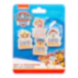 4 gummen met afbeeldingen van de dappere honden uit Paw Patrol. Leuk voor in de schooltas of om uit te delen als cadeautje in een uitdeelzakje. De gummen zijn ca. 4,5 x 4 cm groot.