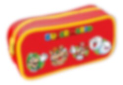 Het rode etui met gele accenten toont Mario, Luigi, Bowser en Boo, klaar om mee op avontuur te gaan in de schooltas. Het ruime vak biedt plaats voor potloden, gummen en een flinke dosis creativiteit.