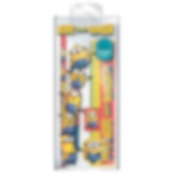 Geef de start van school een leuke twist met deze Minions School Set! Deze set bevat alles wat nodig is voor een geslaagde schooldag: een potlood, een inktpen, een liniaal, een puntenslijper en een gum, allemaal met kleurrijke en grappige motieven van de geliefde Minions.