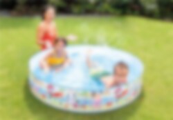 Het Intex Kinderbad met Strandmotief brengt het plezier van een stranddag naar je tuin. Dit bad is perfect voor kleine kinderen en eenvoudig op te zetten. Geschikt voor kinderen vanaf 3 jaar onder toezicht van een volwassene.