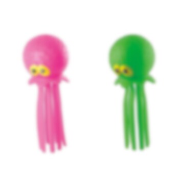 Deze octopus zuigt water op en spuit het uit gaten in zijn hoofd als je erin knijpt of het weggooit. Ideaal om buiten te spelen. Ze worden ongesorteerd en per stuk verkocht en zijn ongeveer 15 cm hoog.