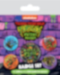 5 buttons met grappige motieven uit de tv-serie Teenage Mutant Ninja Turtles.
