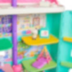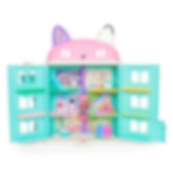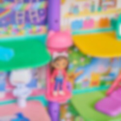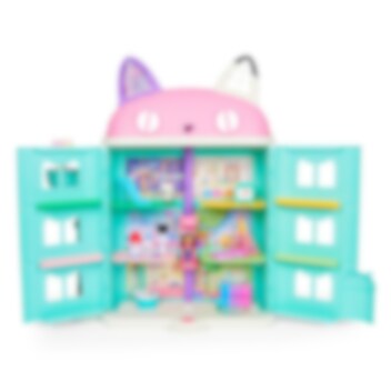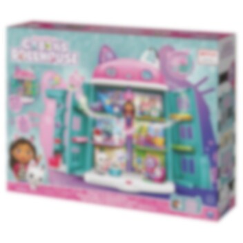 Breng de magie van Gabby's Dollhouse rechtstreeks naar je huis met dit fantastische 'Purrfect Poppenhuis'. Dit 60 cm hoge poppenhuis zit vol met verrassingen en functies om te ontdekken. Met geluid en citaten rechtstreeks uit de serie, zal dit poppenhuis urenlang creatief plezier bieden. De set bevat een Gabby-figuur, een Pandy Paw-figuur, meubels voor elke kamer en andere leuke accessoires.