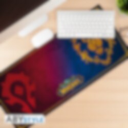 Exclusieve muismat van hoge kwaliteit met een mooie afbeelding van de Alliance en Horde logo's uit World of Warcraft. Pimp je gaminghoek met deze, of waarom geef je het niet cadeau aan iemand die van World of Warcraft houdt?
