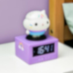 Begin de dag op de beste manier met deze charmante Gabby's Dollhouse wekker! De digitale wekker is ca. 16 cm hoog en heeft bovenop een verlichte Cakey Cat. De wekker heeft een muzikaal alarm dat je elke ochtend wekt. Druk gewoon op het hoofd van Cakey Cat om de snoozefunctie te activeren. Wanneer je op het hoofd drukt, gaat ook het nachtlampje aan, perfect om een zachte gloed in de kinderkamer te creëren. Een leuke én praktische toevoeging voor alle fans van Gabby's Dollhouse.