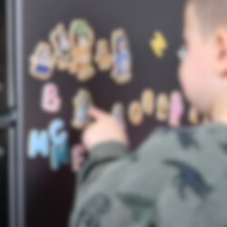 Ontdek samen met Bluey en haar vriendjes het alfabet op een speelse manier. Deze kleurrijke set bevat 53 magnetische letters uit het Nederlandse en Duitse alfabet, samen met 17 leuke figuren uit de wereld van Bluey. Alle onderdelen zijn gemaakt van hout en hebben een magnetische achterkant, perfect voor op de koelkast of andere metalen oppervlakken.