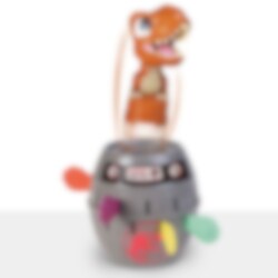 Druk op en draai de dinosaurus terug in de kooi en blijf om beurten doorgaan. Niemand weet welke ronde hem de volgende keer naar buiten zal brengen - het is elke keer anders! Blijf om beurten spelen. Wie het langst overleeft, wint het spel! Dinosaurus fans, jong en oud, zullen dol zijn op dit spannende spel dat snel oppakt en gemakkelijk te leren is, maar je altijd in spanning houdt over wat er daarna gaat gebeuren. Eén verkeerde beweging en je wordt dinosaurusvoer!