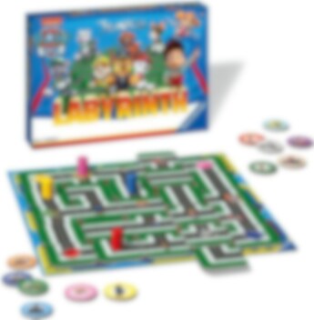 Het pakket bevat: 1x speelbord, 17 x vierkante doolhofstukken, 12 x ronde speelfiches en 4 x speelstukken
