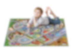 De mat is 112 x 75 cm groot en gemaakt van zacht polyester – praktisch én comfortabel voor lange speelsessies!