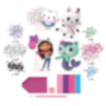 De set bevat meer dan 800 glinsterende diamantsteentjes in meerdere kleuren en laat kinderen vier verschillende motieven maken, geïnspireerd door Gabby en haar vrienden. Perfect als cadeau, regenachtige-dag-activiteit of als creatief moment tijdens het feestje.
