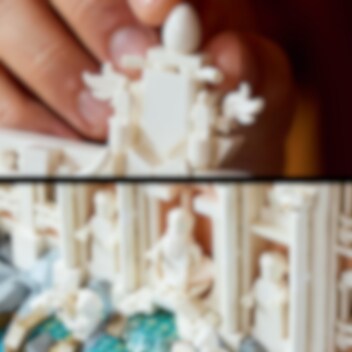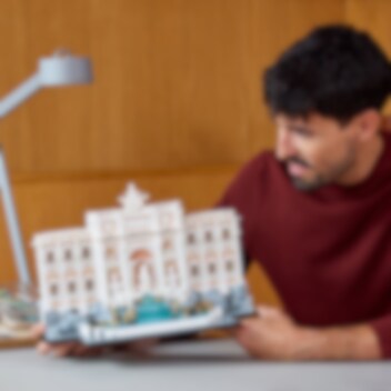 Richt al je creativiteit op dit model van de beroemde Trevifontein in Rome. Ontdek alle details terwijl je het model bouwt met behulp van warme witte, bruine en roze elementen en verschillende blauwtinten om de diepte van het water weer te geven. Bouw de indrukwekkende façade van het Palazzo Poli, compleet met pauselijk wapenschild. Voeg daar de verschillende sculpturen in de vorm van minifiguren aan toe en bewonder dit monument in al zijn glorie.