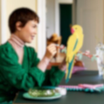 Haal een stukje natuur in huis met deze levendige LEGO® Art De Faunacollectie – Kleurrijke papegaaien (31211) bouwset. Het is een ideale decoratieve cadeautip waarmee volwassen bouwers een prachtige en kleurrijke scène kunnen creëren met 2 papegaaienmodellen. Dit LEGO kunstwerk zonder lijst kan niet worden neergezet en is ontworpen om aan de muur te hangen. Dit stijlvolle 3D-kunstwerk om zelf te bouwen toont 2 exotische, kleurrijke papegaaien: een gele papegaai op een tak versierd met bloemen en een roze papegaai in de lucht met uitgestrekte vleugels. De set is inclusief 2 bouwinstructies, zodat volwassen LEGO fans samen met een geliefde de papegaaien kunnen maken als onderdeel van een ontspannende en sociale ervaring. Deze LEGO Art bouwset biedt volwassenen een boeiend project, waarbij ze hun eigen blikvanger maken en genieten van een ontspannende creatieve activiteit. Er zijn diverse sets in het assortiment voor iedereen met een passie voor muziek, kunst, interieurontwerp of films.