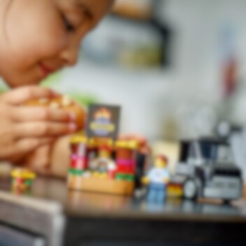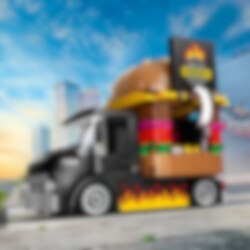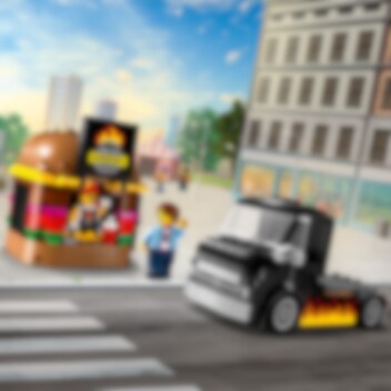 Laad de hamburgertruck vol en ga naar de hipsterwijk in LEGO® City. Klap het serviceluik omhoog om het uithangbord te laten zien, ga naar het keukengedeelte en serveer het populairste fastfood van de stad aan de coolste klanten. Als je klaar bent,spring je achter het stuur en rijd je met deze geweldige foodtruck naar de volgende locatie!