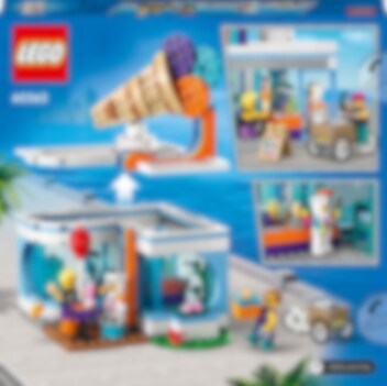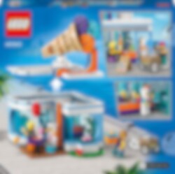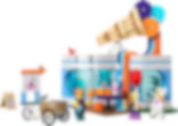 Stap op de bakfiets en rijd naar de LEGO® City IJswinkel. Help de medewerker om heerlijke ijsjes en milkshakes te serveren aan tevreden klanten. Deze salon is echt cool! Het is de ideale bestemming voor een verjaardagsfeestje met een nette toonbank, blender, koelkast en een zitgedeelte in de buitenlucht waar vrienden en gezinnen kunnen relaxen terwijl ze het menu bekijken.