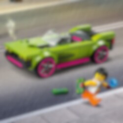 Er is iemand ontsnapt uit de gevangenis! Stap in het stoere onderscheppingsvoertuig van de politie en ga op jacht naar een van de meest beruchte boeven van LEGO® City. De wagen is uitgerust met een grote achterspoiler, coole velgen en stoere laagprofielbanden voor extra snelheid en grip. Scheur door de bochten en voer gave drifts uit om de boef voor te blijven in haar supersnelle auto! Er wacht je geweldige actie in LEGO City!