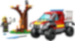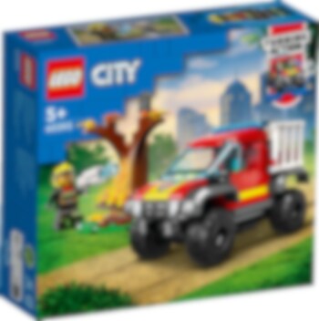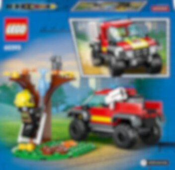 Oh nee... Een onbeheerd kampvuur is uit de hand gelopen! Stap in de supercoole 4x4 brandweertruck en race naar de plek van het incident. Help! Er zit een kat in de boom en die kan niet meer naar beneden. Pak snel je handblusser en doof de vlammen. Gebruik de ladder om het katje te redden. Na afloop trakteer je de kat op een smakelijk geroosterd visje. Maak je op voor LEGO® City brandweeravonturen boordevol actie!