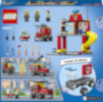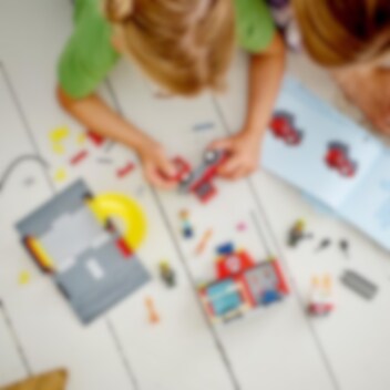 Prikkel de verbeelding van kinderen met de LEGO® City Brandweerkazerne en Brandweerwagen (60375) speelset met een kazerne met slaapvertrek, garage en een leuke noodglijbaan. Ook is er een coole brandweerauto met flexibele blusslang en dakladder. Voeg daar de popcornkar, een paar LEGO vlammen en de minifiguren van een verkoper en brandweerlieden aan toe voor urenlange actie. Gedrukte en digitale bouwinstructies Deze eenvoudig te bouwen speelset voor kinderen vanaf 4 jaar wordt geleverd met een LEGO startsteen, instructies met afbeeldingen en de LEGO Builder app – een digitale mentor met intuïtieve zoom- en draaifuncties waarmee kinderen hun model van alle kanten kunnen bekijken terwijl ze het bouwen. Spelenderwijs de wereld ontdekken LEGO City 4+ bouwsets bevatten gebouwen, realistische voertuigen en leuke personages voor fantasierijk speelplezier. Kinderen leren over de wereld om hen heen via verhalen en situaties die het echte leven op een leuke en spannende manier weerspiegelen.