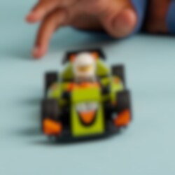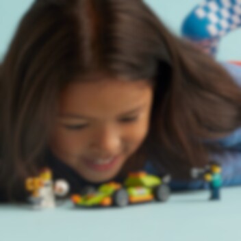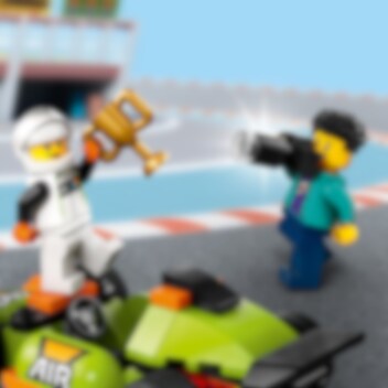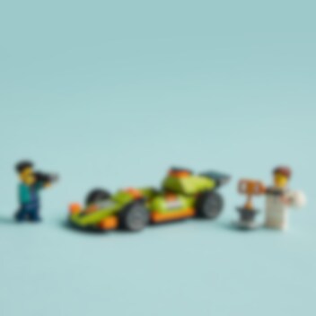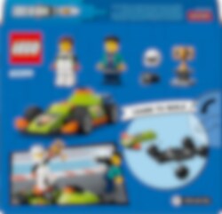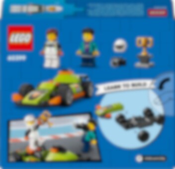 Bereid je voor op razendsnel plezier met de LEGO® City Groene racewagen. Kruip achter het stuur van deze supercoole raceauto en maak je op voor actie! Maak een gierende start, zoef door bochten en vlieg langs de fotograaf om in recordtijd over de finish te rijden! Maak vervolgens een ereronde met de winnaarstrofee voordat je naar het volgende circuit gaat.