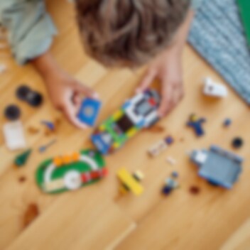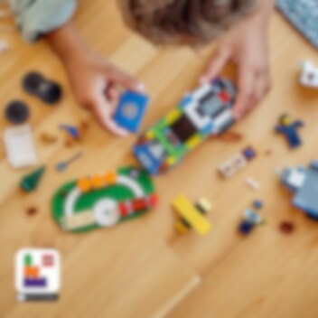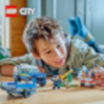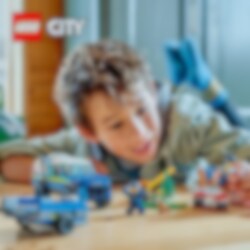 Kinderen en hondenliefhebbers van 5 jaar en ouder zullen dol zijn op deze LEGO® City Mobiele training voor politiehonden (60369) speelset. De set zit boordevol inspiratie voor fantasierijk spel en bevat een terreinwagen, aanhanger en 3 hondenspeeltoestellen: een wipwap, hindernis en stappootjes. Voeg daar de politieagenten en de figuren van een volwassen hond en een puppy aan toe en het plezier kan beginnen. Een boeiende bouw- en speelervaring Inclusief eenvoudige gedrukte bouwinstructies met afbeeldingen en de LEGO Builder app – een digitale bouwpartner met intuïtieve zoom- en draaifuncties waarmee kinderen hun model van alle kanten kunnen bekijken terwijl ze het bouwen. De creatieve wereld van LEGO City Met LEGO City Politie speelsets krijgen kinderen een leuke bouw- en speelervaring met gedetailleerde gebouwen, realistische voertuigen en personages die fantasierijke rollenspellen stimuleren.