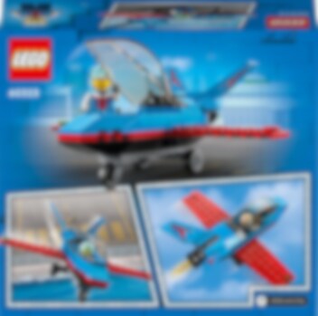 De fantasie van kinderen schiet de lucht in met deze LEGO® City Stuntvliegtuig (60323) speelset, bestaande uit een kleurrijk vliegtuig met grote staartvinnen en een krachtige booster. Open de cockpit en zet de meegeleverde stuntpiloot erin voor een heleboel avontuurlijke rollenspellen hoog in de lucht. Een boeiende bouwervaring voor kinderen vanaf 5 jaar Deze LEGO City Stuntvliegtuig speelset bevat een eenvoudig te volgen gedrukte bouwhandleiding met afbeeldingen en digitale bouwinstructies in de gratis LEGO Bouwinstructies app voor smartphones en tablets. Met deze stapsgewijze interactieve handleiding kunnen kinderen inzoomen en hun model tijdens het bouwen draaien en vanuit alle hoeken bekijken. LEGO City Geweldige voertuigen Kinderen zien overal om zich heen interessante voertuigen en machines. Met de LEGO City Geweldige voertuigen bouwsets kunnen ze die van dichtbij ontdekken met realistische modellen en leuke personages die inspiratie bieden voor eindeloos fantasierijk speelplezier.
