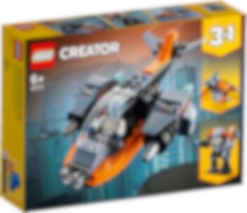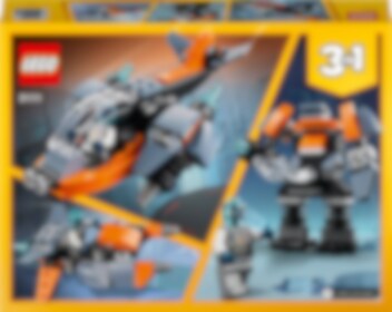 Ontdek interessante nieuwe planeten met de Cyberdrone. Neem plaats in de cockpit, schakel de stuwraketten in en vlieg de ruimte in met de robotminifiguur voor gewaagde avonturen! Zodra je bent geland, bouw je hem om tot een geweldige cybermecha, een coole cyberscooter of iets wat je helemaal zelf hebt bedacht. Beleef urenlang plezier in de ruimte met deze leuke 3-in-1 set!