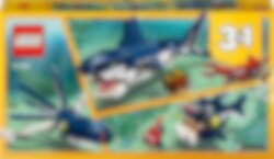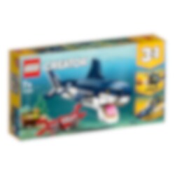 Duik in een oceaan vol avonturen met de LEGO® Creator 3in1 set Diepzeewezens. Help de schattige diepzeekrab de schatkist te beschermen tegen de enorme, huiveringwekkende haai met zijn bijtgrage kaken, vlijmscherpe tanden, weerspiegelende ogen en krachtige zwiepende staart! Bouw de haai vervolgens om tot een flexibele inktvis of een zeeduivel met een enorme bek voor nog meer onderwaterplezier.