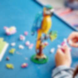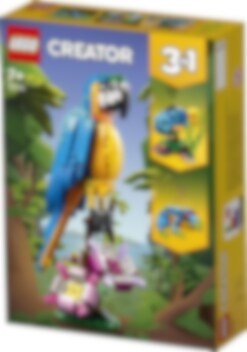 Kleine bouwers en gepassioneerde dierenliefhebbers van 7 jaar en ouder kunnen diep het regenwoud in trekken voor verhalen boordevol actie met deze LEGO® Creator 3in1 Exotische papegaai (31136) bouwset. De set bevat een kleurrijke papegaai die zijn lichaam volledig kan draaien, terwijl hij op een boomtak zit en zijn vleugels en staart beweegt. 3-in-1 speelgoed voor creatief speelplezier Met deze geweldige LEGO 3-in-1 set kunnen kinderen 3 verschillende exotische dierenmodellen bouwen. Zo kunnen ze een kleurrijke papegaai bouwen die op een boomtak zit en deze vervolgens ombouwen tot een speelse vis die diep in de zee zwemt of een grappige kikker die zijn poten kan bewegen. Een leuke digitale ervaring voor LEGO fans Download de LEGO Builder app en betreed een nieuwe wereld vol bouwplezier. Hiermee kunnen kinderen inzoomen en hun modellen draaien in 3D, sets opslaan en hun voortgang bijhouden.