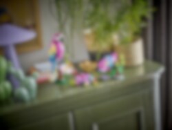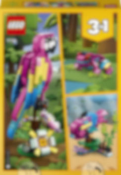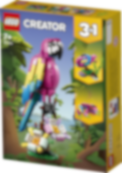 Kleine bouwers en gepassioneerde dierenliefhebbers van 7 jaar en ouder kunnen diep het regenwoud in trekken voor verhalen boordevol actie met deze LEGO® Creator 3in1 Exotische roze papegaai (31144) bouwset. De set bevat een felroze met blauwe papegaai die zijn lichaam volledig kan draaien, terwijl hij op een boomtak zit en zijn vleugels en staart beweegt. 3-in-1 speelgoed voor creatief speelplezier Met deze geweldige LEGO 3-in-1 set kunnen kinderen 3 verschillende exotische dierenmodellen bouwen. Zo kunnen ze een felgekleurde papegaai bouwen die op een boomtak zit en deze vervolgens ombouwen tot een speelse vis die diep in de zee zwemt of een grappige kikker die zijn poten kan bewegen. Een leuke digitale ervaring voor LEGO fans Download de LEGO Builder app en betreed een nieuwe wereld vol bouwplezier. Hiermee kunnen kinderen inzoomen en hun modellen draaien in 3D, sets opslaan en hun voortgang bijhouden.
