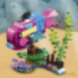 Trek het regenwoud in voor leuke avonturen met 3 exotische dieren! Je kunt een prachtige exotische roze papegaai bouwen die op een boomtak zit, omringd door kleurrijke bloemen. Bouw hem vervolgens om tot een felroze met blauwe vis die in de zee zwemt of een kleurrijke kikker die zijn poten kan bewegen. Met de gedetailleerde en verstelbare modellen in deze 3-in-1 speelset beleef je gegarandeerd urenlang speelplezier.