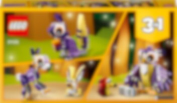 Met deze superschattige LEGO® Creator 3in1 Fantasie boswezens (31125) bouwset kunnen kinderen van 7 jaar en ouder magische bosdierenavonturen naspelen. De set bestaat onder andere uit een wijze uil met een draaibare kop en een verstelbare staart, vleugels en veren die een verhaal voorleest aan een egeltje. 3in1 speelgoed voor creatief speelplezier Met deze geweldige LEGO 3in1 set kunnen kinderen 3 verschillende, superleuke scènes bouwen. Zo kunnen ze een wijze uil en een egeltje bouwen, deze ombouwen in een hertje en een konijn en deze vervolgens weer herbouwen tot een schattige eekhoorn die aan een eikeltje zit te knabbelen. Ze kunnen natuurlijk de 175 onderdelen ook gebruiken om een nieuw dier te creëren. Een digitale ervaring voor LEGO bouwers De dierenspeelgoedset bevat interactieve, digitale bouwinstructies om de bouwervaring nog leuker te maken. Deze kun je vinden in de gratis LEGO Bouwinstructies app voor smartphones en tablets. Kinderen kunnen de zoom- en draaifuncties gebruiken om het model tijdens het bouwen te bekijken.