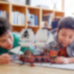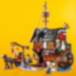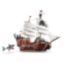 Arrrrrrr! Hijs de zeilen en haal het anker van het fantastische Piratenschip op! Kijk uit naar geschikte doelen, want het ruim ziet er schrikbarend leeg uit. Ahoi, schip aan stuurboord! Breng de kanonnen in positie en maak je op om te schieten: dat schip lijkt tot de nok toe gevuld met schatten! Bouw het schip na je avonturen om tot een piratenherberg of een mysterieus schedeleiland. Met deze geweldige 3-in-1 set zitten kinderen nooit stil!
