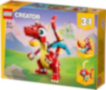 Creatieve kinderen vanaf 6 jaar kunnen naar een magisch land reizen voor leuke verhalen met deze 3-in-1 Rode draak (31145) speelgoedbouwset. De set bevat een draak met grote ogen en verstelbare armen, handen, vleugels, benen, voeten, kop en bek, zodat kinderen kunnen kiezen hoe ze het model voor avonturen willen gebruiken en het daarna ergens kunnen neerzetten. Deze LEGO® Creator set biedt kinderen een wereld vol speelmogelijkheden met 3 verschillende dierenmodellen om te bouwen met dezelfde set stenen. Ze kunnen een beweegbare draak bouwen en deze ombouwen tot een feniks met kleurrijke veren of een vis met verstelbare vinnen – of zelf een LEGO dier bedenken. LEGO Creator 3in1 speelgoed is een geweldig cadeau met in elke doos 3 bouwmogelijkheden. Kinderen zullen de modellen graag bouwen, herbouwen en opnieuw bouwen. Ze kunnen zich urenlang vermaken met 3-in-1 sets die aansluiten op hun interesses, waaronder supersnelle voertuigen, geweldige dieren en gedetailleerde stadstaferelen.