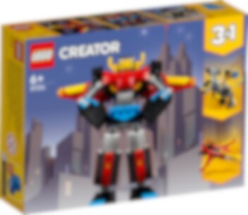 LEGO® fans vanaf 6 jaar en ouder zullen het geweldig vinden met deze Creator 3in1 Superrobot (31124) futuristische verhalen boordevol actie te bedenken. De indrukwekkende robot heeft een verstelbaar hoofd, benen, voeten, armen en handen, plus vleugels op zijn rug. Dat is alles wat kinderen nodig hebben om te genieten van heerlijk rollenspelplezier. 3in1 bouwspeelgoed voor kinderen Met deze LEGO Creator 3in1 bouwset kunnen kinderen 3 verschillende speelervaringen beleven. Zij kunnen de verstelbare Superrobot bouwen met vleugels op zijn rug en deze vervolgens ombouwen tot een verstelbare mechadraak of een geweldig straalvliegtuig met verstelbare vleugels. Eindeloos plezier met 3in1 LEGO speelgoed LEGO Creator 3in1 bouwspeelgoed biedt eindeloos plezier en een wereld aan mogelijkheden met in elke doos 3 modellen! Creator 3in1 sets stimuleren non-stop fantasierijk speelplezier met een uitgebreide collectie bouwbare modellen die de passie van kinderen voeden, zoals tijgers, auto's en supersnelle straalvliegtuigen.