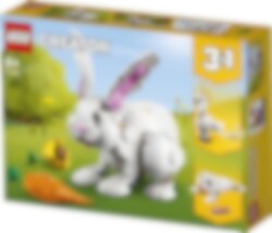 Kinderen van 8 jaar en ouder kunnen leuke verhalen bedenken met deze LEGO® Creator 3in1 Wit konijn (31133) set. De set bevat een konijn om zelf te bouwen met een verstelbare kop, poten, bek en oren en keuze uit 2 snacks: een wortel of een bloem. Non-stop fantasierijk speelplezier voor dierenliefhebbers Deze LEGO Creator 3in1 set biedt kinderen 3 verschillende bouw- en speelervaringen. Ze kunnen een speelgoedkonijn bouwen en dit vervolgens ombouwen tot een prachtige kaketoe die zaadjes eet of een schattige witte zeehond met een vis als tussendoortje. Een leuke digitale ervaring voor LEGO fans Met de LEGO Builder app kun je het model draaien, erop inzoomen en het visualiseren. Dit begeleide bouwproces helpt jongere bouwers om hun creatie tot leven te brengen op hun tablet of smartphone en geeft hen het gevoel dat ze iets bereikt hebben.