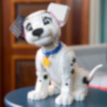 Deze bouwbare LEGO® Disney set voor volwassenen bevat een Dalmatiër puppypersonage dat ca. 22 cm hoog is als het naar voren leunt.