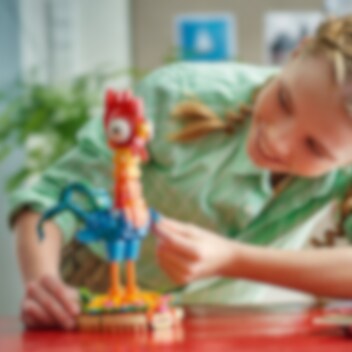Haal de fantasie en het plezier uit Disney's Vaiana en Vaiana 2 naar de echte wereld met deze verstelbare Heihei (43272) LEGO® ǀ Disney Vaiana 2 bouwset. Dierenfans, filmliefhebbers en kinderen vanaf 9 jaar zullen genieten van het bouwen van het kleurrijke model met een draaibare kop en verstelbare vleugels en staartveren. Zet hem vervolgens op zijn kippenpoten of op de standaard met decoratieve bloemen en een naamplaatje. Deze Disney bouwset voor meisjes, jongens en fans is cool bouwbaar fantasiespeelgoed waar iedereen het over zal hebben. Het bouwproces is geschikt voor oudere kinderen en volwassen Disney fans. De set is een leuke cadeautip en de hilarische blikvanger kan ook worden gecombineerd met andere LEGO ǀ Disney bouwsets (apartverkrijgbaar) in het assortiment. Bouwers krijgen een intuïtieve bouwervaring met de LEGO Builder app, waar ze kunnen inzoomen en modellen in 3D kunnen draaien, sets kunnen opslaan en hun voortgang kunnen bijhouden.