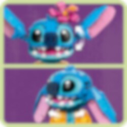 Maak vrienden met de coolste alien ooit: Stitch! Vier ohana met deze LEGO® ǀ Disney set door de schattige Stitch, gekleed in zijn leuke Hawaïaanse shirt, in elkaar te zetten en hem vervolgens mee te nemen voor een ijsje. Daarna kun je Stitch rechtop zetten, met zijn oren omhoog of omlaag, zijn hoofd naar voren of opzij en met of zonder het ijshoorntje en zijn favoriete bloem. Aloha!