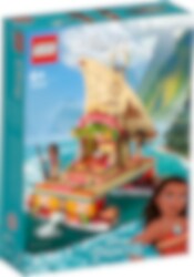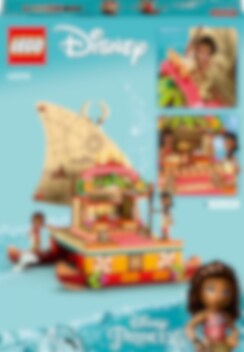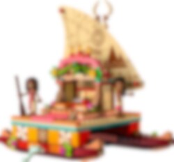 Hijs het zeil en ga op avontuur! Reis mee met Vaiana en haar moeder Sina in deze leuke LEGO® ǀ Disney set. Bouw de boot die Vaiana in de grot vond, hijs het gedecoreerde zeil dat de verhalen van het Motunui volk laat zien en trek eropuit om de wereld te ontdekken. Leer van Sina hoe je een roeispaan gebruikt, terwijl Vaiana de drums bespeelt ter inspiratie. Eet een stukje kokosnoot en rust even uit onder het afdak. Oh kijk, een dolfijn! Laten we spelen!