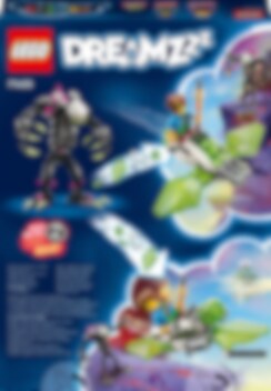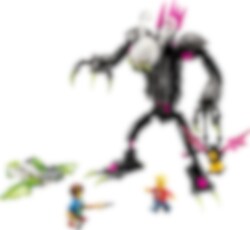 Kinderen van 7 jaar en ouder strijden tegen een angstaanjagende figuur met de LEGO® DREAMZzz Het Grimmonster (71455) bouwset. De set is gebaseerd op de actie uit de tv-serie DREAMZzz en laat kinderen het gemene Grimmonster bouwen en vervolgens Mateo en Z-Blob helpen om hun vriend Cooper uit zijn klauwen te redden voordat hij naar de Heer der Nachtmerries wordt gebracht. 1 set, 2 avonturen Kinderen kunnen kiezen uit 2 bouwmogelijkheden om Cooper van het Grimmonster te redden. Ze kunnen Z-Blob ombouwen tot een minivliegtuig om de slechterik te confronteren of een hoverbike om het Grimmonster mee te achtervolgen, te onderscheppen en Cooper te bevrijden. Zo kunnen kinderen hun eigen verhaal kiezen en genieten van dubbel zo veel speeltijd. Breng het plezier tot leven De minifiguren van Mateo en Cooper brengen de actie tot leven. Accessoires zijn onder andere een riem, een potloodspeer en een zandloper, die belangrijk zijn voor de personages in de tv-serie.