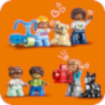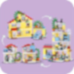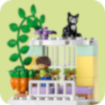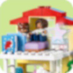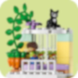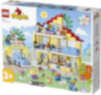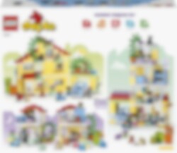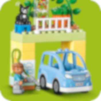 Welkom in het LEGO® DUPLO® Stad 3in1 Familiehuis (10994)! Dit model zit boordevol leuke details en laat peuters vanaf 3 jaar en hun ouders samen spelen. Met de 7 meegeleverde figuren kunnen ouders sociale vaardigheden aanleren terwijl kinderen zichzelf leren uiten. Huisje-boompje-beestje voor jonge kinderen Dit speelgoedhuis biedt diverse leermogelijkheden. Peuters spelen gewoontes voor het slapengaan na, zoals tandenpoetsen en verhaaltjes vertellen in het stapelbed waar ze een gezellige sfeer kunnen creëren met de verlichtingssteen in de sterlamp. Ze leren over gezonde voeding in de keuken of door de tomaatjes en worteltjes in de tuin te plukken. In de garage staat een bouwbare elektrische speelgoedauto die wordt 'opgeladen' door zonnepanelen, met een leuke Duwen en rijden-functie voor urenlang speelplezier. Echt creatief bouwen Het huis kan op 3 manieren worden gebouwd. Peuters kunnen één groot huis van 3 verdiepingen bouwen, een hoog gebouw of 2 kleinere woningen met een tuin.