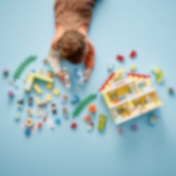 Kom langs en ontdek dit familiehuis, waar een warm welkom op je wacht. Laat peuters genieten van urenlang speelplezier terwijl ze de vele details van dit huis boordevol functies verkennen. Van de keuken op de begane grond tot de tuin op het dak: ouders leren peuters over de praktische en emotionele aspecten van het gezinsleven terwijl ze samen plezier maken, herinneringen creëren en dierbare momenten delen tijdens het spelen.